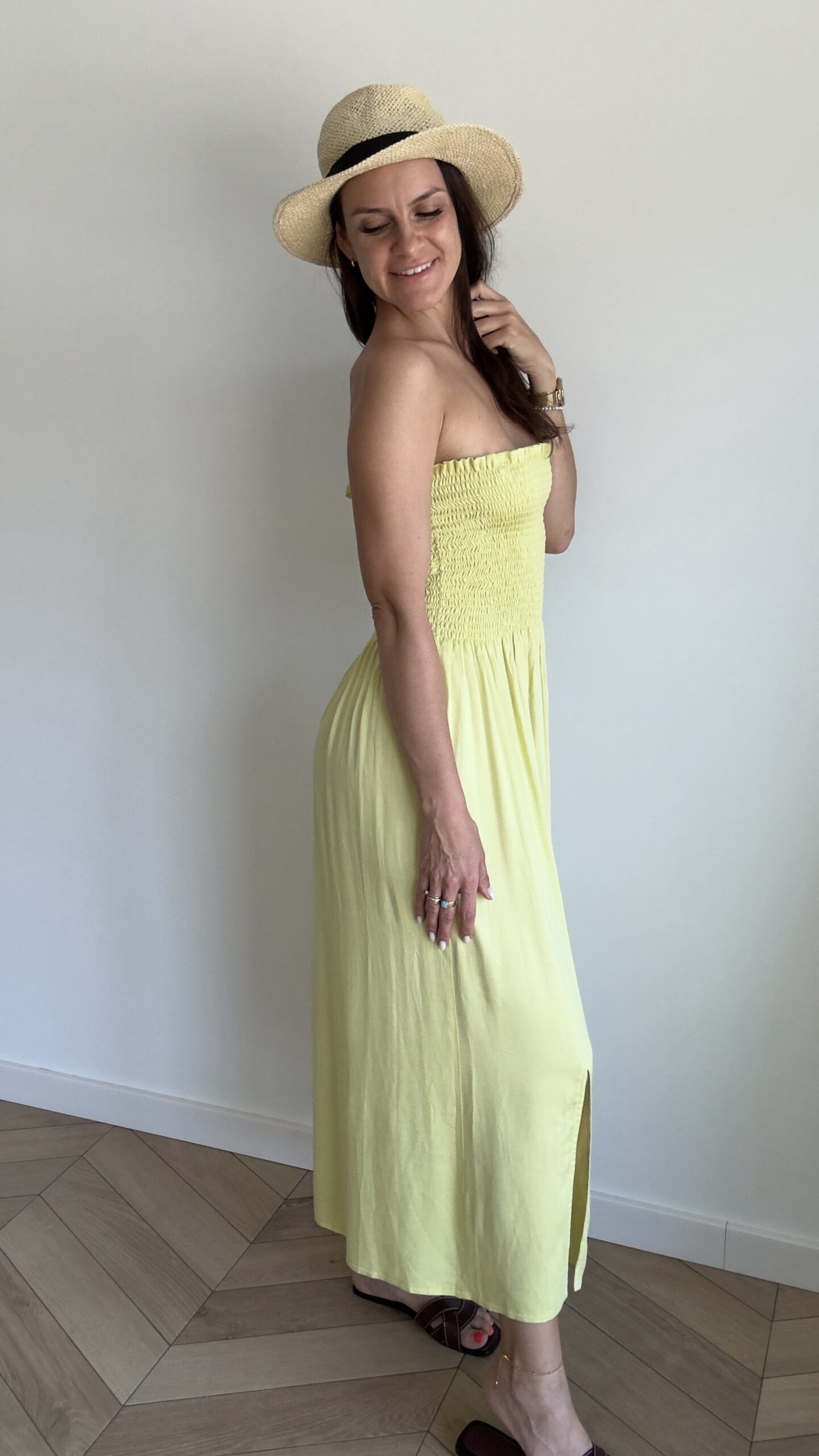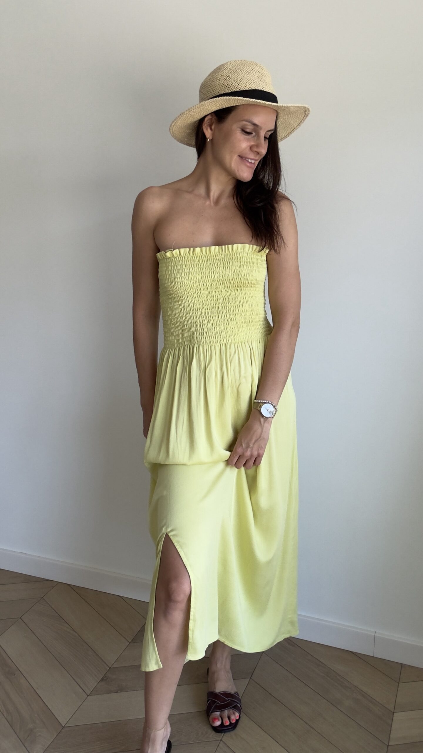 Midi sukienka 2w1 idealna dla KAŻDEJ kobiety! Jej niespotykany masełkowo limonkowy kolor nie pozwoli przejść obok Ciebie obojętne. Konstrukcja 2w1 daje multum możliwości stylizacji. Must have każdej wakacyjnej szafy. Jej odpinane wiązane ramiączka, to idealne dopasowanie do Twojej sylwetki. Materiał daje uczucie chłodu. Sukienka pozwala czuć się komfortowo także w ciąży dzięki luźnemu lejącemu dołowi oraz gumkowanej elastycznej górze. Subtelny rozporek nie jest zbyt duży, aby pomimo brzuszka, nie odsłaniać zbyt wiele.