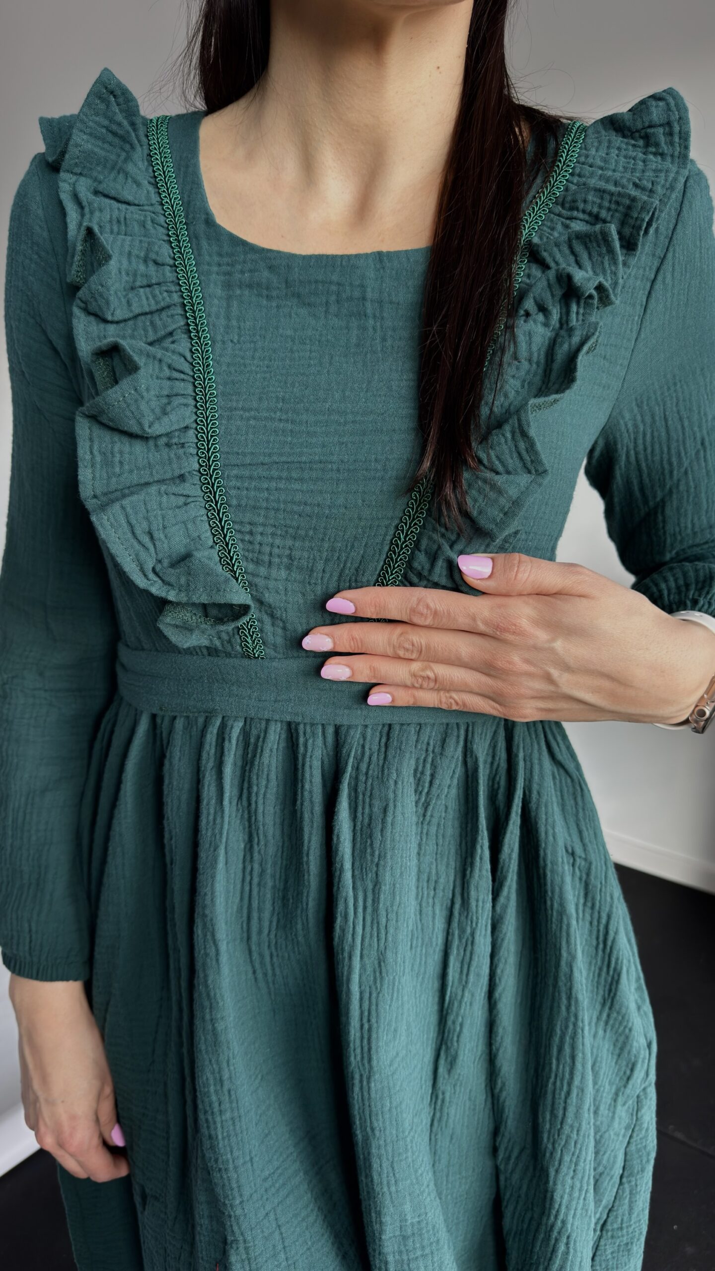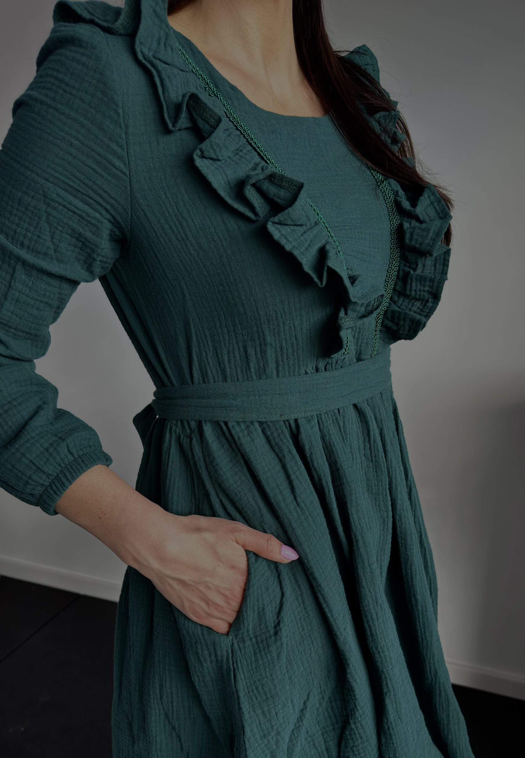 📏 Wymiary mierzone na płasko (+/- 1 cm) Swój rozmiar dobierz pod kątem rozmiaru biustu – talię zwęzisz paskiem: